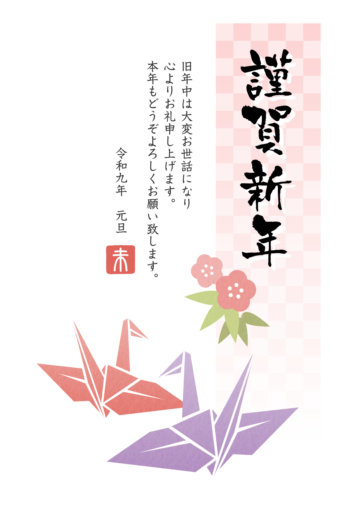 ビジネス用和風年賀状「折り鶴」